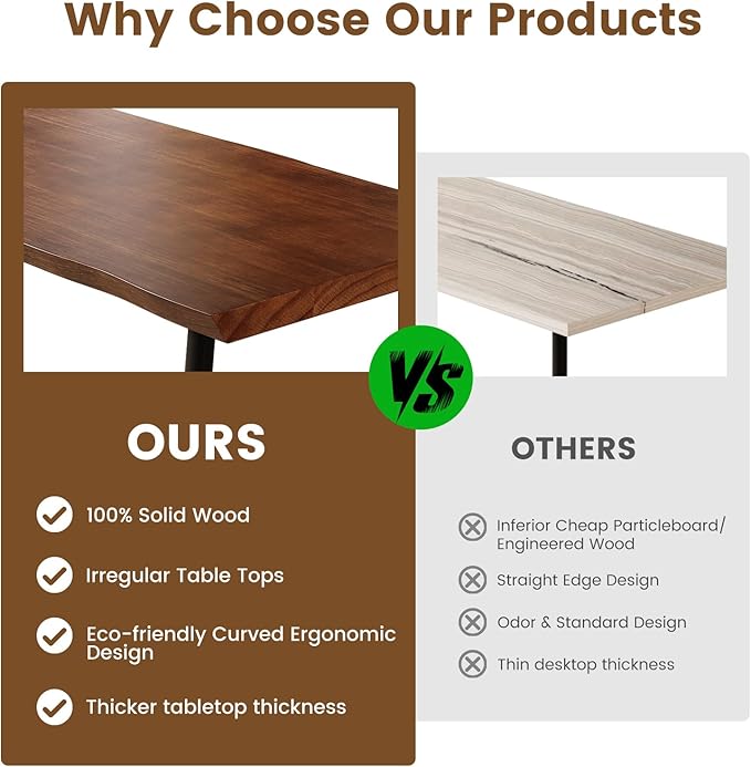 - 【Thicken Live Edge Desktop】Features an extra-thick 1.9" live edge solid wood top that showcases the natural beauty of wood grain. Paired with a robust metal frame, this desk table provides exceptional stability for heavy use