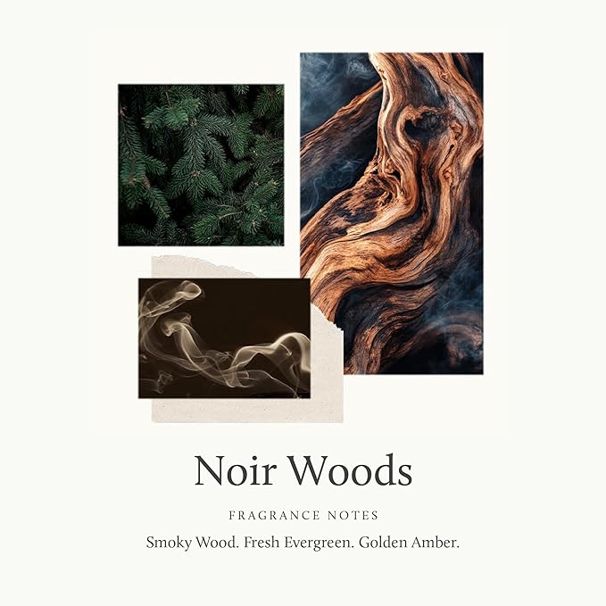 - Alluring Noir Woods Scented Candles - Smoky wood and fresh evergreen blend with golden amber to create a refined fragrance that invites moments of stillness, connection, and inspiration. A scent that sets the tone, this candle turns ordinary time into something intentional.