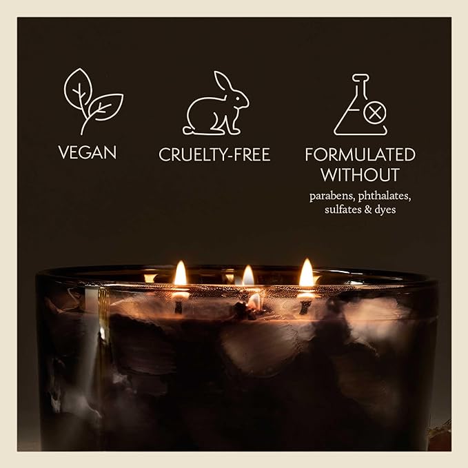 - Large 3-Wick Candle - Designed for larger spaces, with an 18 oz fill and up to 38 hours of burn time, this fall candle is made to be part of your everyday moments—lit during your morning routine, evening wind-down, or when the guests are over. The striking black candle was inspired by smoke and glowing light, adding beauty and elegance to any room.