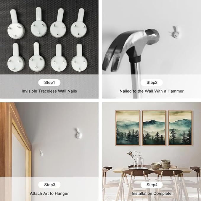 - 【Easy to Hang】24×36 inches×3pcs (60×90cm×3pcs) neutral foggy pine tree landscape frame set is easy to hang, ready to use, with metal hooks and non-marking nails. It takes only 5 minutes to finish hanging.