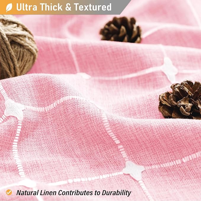 BTTN Extra Long Shower Curtain - 72x96 Inch Long Boho Chic Linen Fabric Heavy Duty Shower Curtain Set with Hooks, Tall Bohemian Farmhouse Shabby Chic Tassel Cloth Shower Curtains for Bathroom - Pink
