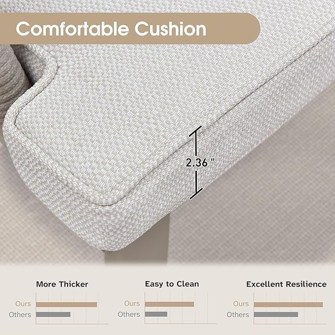 Acanva Luxury Modern Tight Curved Back Velvet Sofa, Minimalist Style Comfy Couch for Living Room Apartment, 4 Seater Modular Sectional, Cream