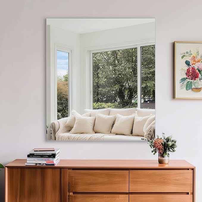 KOCUUY Frameless Mirror, 30"x30" Square Rectangle Bathroom Wall Mirror for Over Sink, Upgraded Shatterproof Unframed Design for Bedroom, Living Room, Entryway