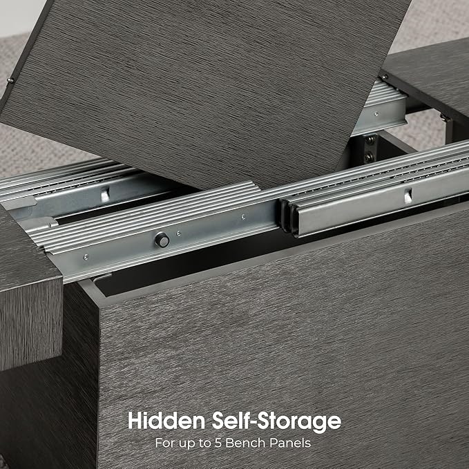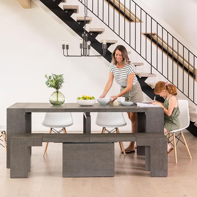 Transformer Table Expandable Dining Table for 2 to 12, Solid Wood Extendable Kitchen Table, Space-Saving Furniture, Small to Large Adjustable Dinner Table with Bench (Dark Grey, Table + Bench)