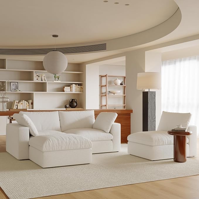 Acanva Modular L-Shaped Sectional Cloud Couch, Free Combination Minimalist Sofa with Shredded Latex Filled Cushion and Removable Slipcovers for Living Room, Home Office, 3 Seater + Ottoman