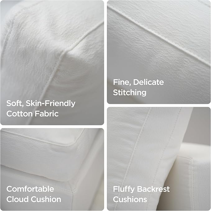 - Cloud Sofa: Experience the ultimate comfort of the modular couch with its skin-friendly 100% cotton fabric upholstery, multiple layers of latex, foam, and doll cotton filled cushions that provides a cosy and inviting feel that is gentle on your skin, making it the perfect place to unwind after a long day.