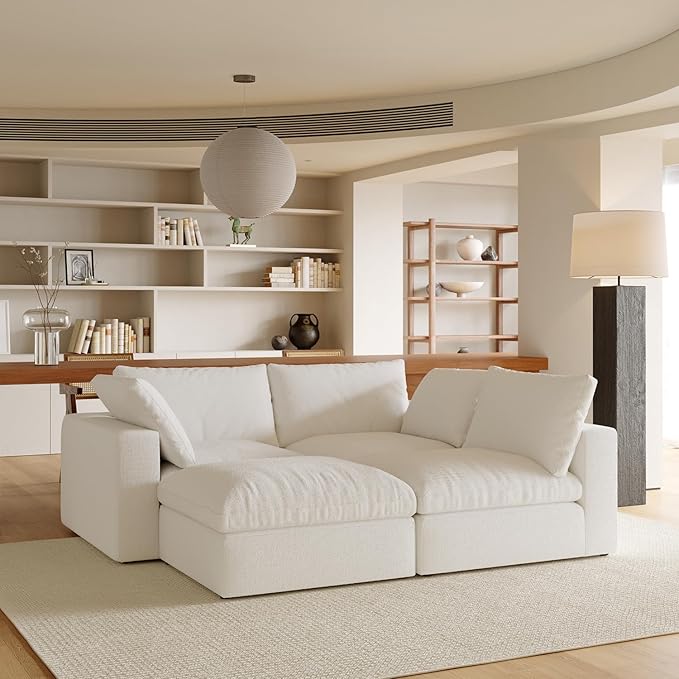- Cloud Sofa: Experience the ultimate comfort of the modular couch with its skin-friendly 100% cotton fabric upholstery, multiple layers of latex, foam, and doll cotton filled cushions that provides a cosy and inviting feel that is gentle on your skin, making it the perfect place to unwind after a long day.
