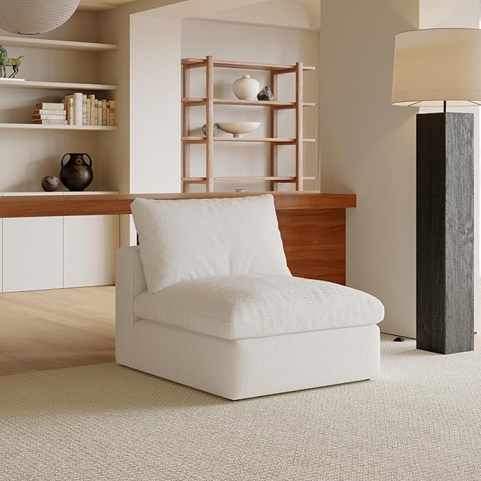 Acanva Oversized Modular Sectional Cloud Couch, Free Combination Minimalist Sofa with Shredded Latex Filled Cushion and Removable Slipcovers for Living Room, Apartments, Home Office, Middle Chair