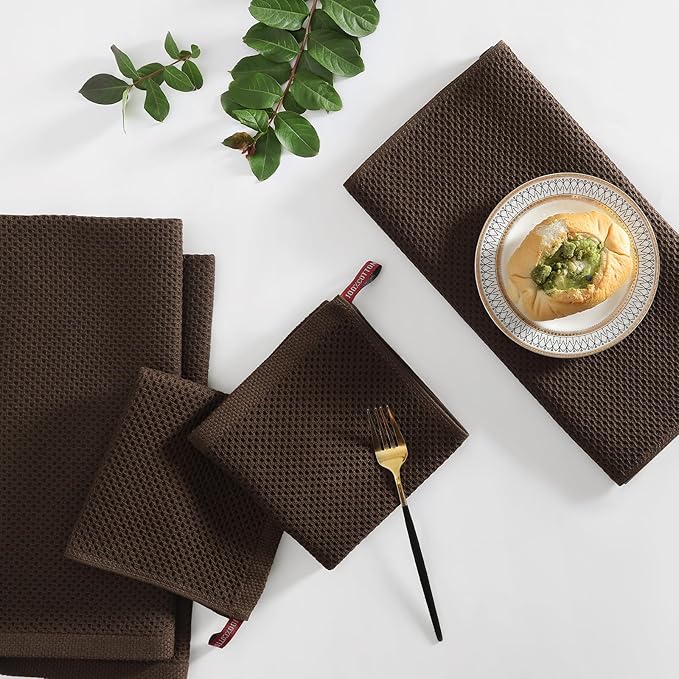 Homaxy 100% Cotton Kitchen Towels and Dishcloths Set, 12 x 12 Inches and 13 x 28 Inches, Set of 12 Bulk Kitchen Towels Set, Ultra Soft Absorbent Dish Cloths for Washing Dishes, Dark Brown