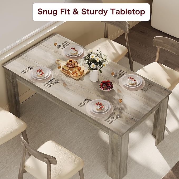 - 1. Long-Lasting Dining Table: Constructed from high-quality MDF, this dining tables accommodates 4 to 6 individuals and offers exceptional strength for extended use. With its sturdy design, this farmhouse dining table can effortlessly support weights up to 300 pounds
