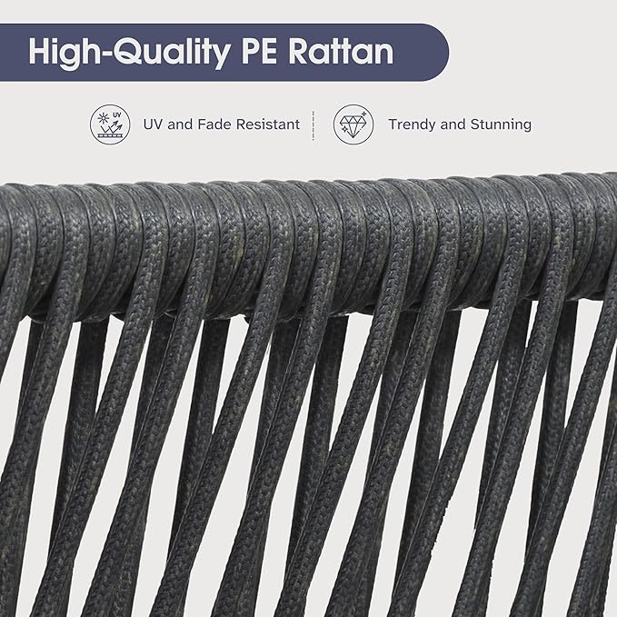 - Unique style: Chair backrest is decorated with parallel weaving rattan rope, which is more durable and resistant to low/high temperature, not easy to break and has a longer service life than traditional rattan.