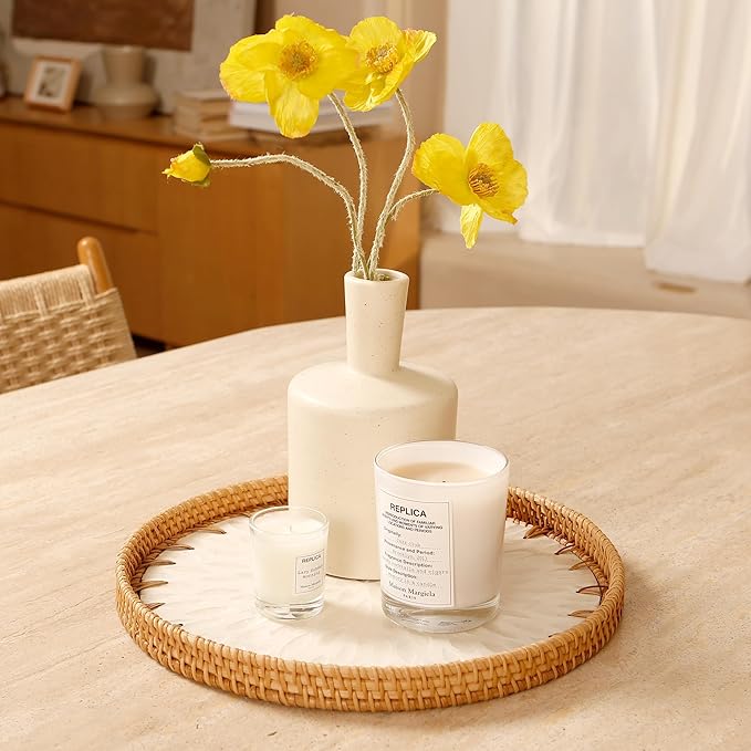 - Handwoven with Care: Each tray is carefully woven by skilled artisans, natural rattan texture and the subtle shine of seashells, reflecting a high level of craftsmanship and attention to detail