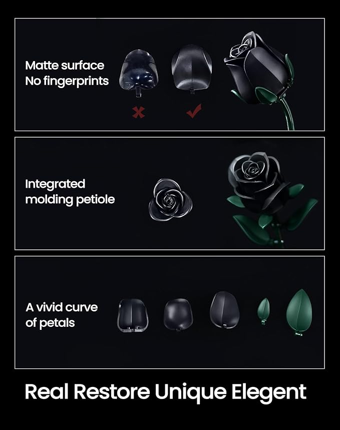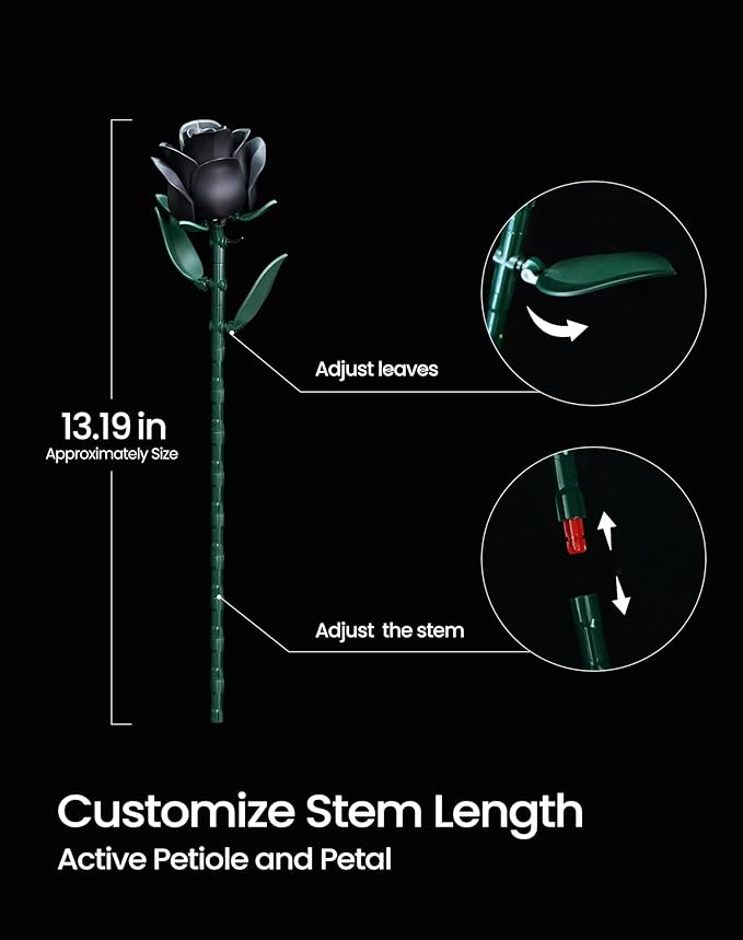 - [Dark Roses Collection] - The uniqut black symbolizes mystery, distinctiveness, and the extraordinary, complements iATOM’s other dark roses series with a unique and vibrant contrast. Build a stunning, everlasting gohtic bouquet that celebrates dreams and the extraordinary