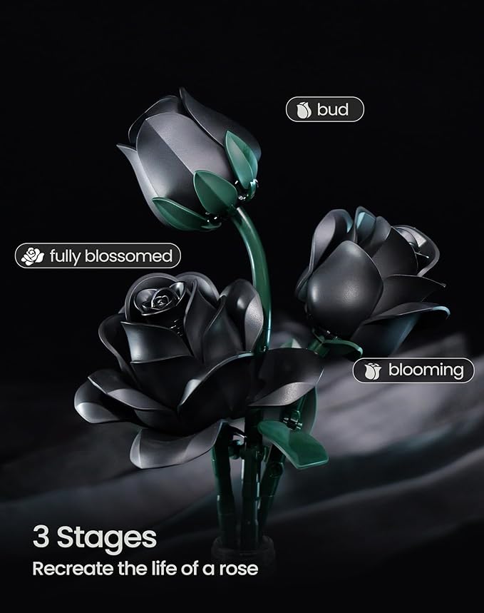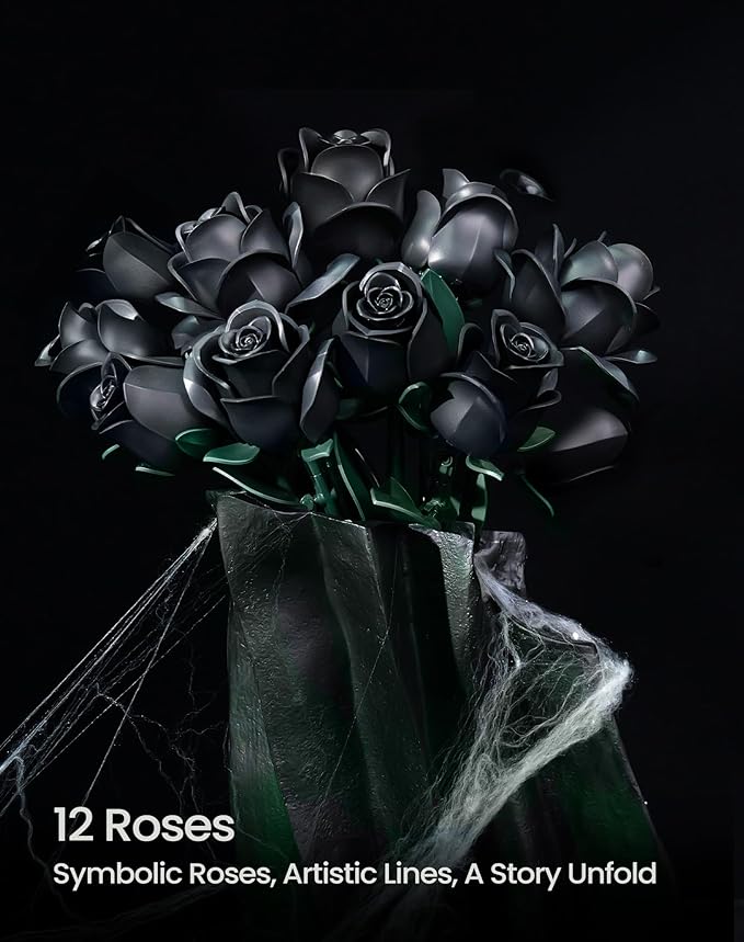 - [Unique Gift for Mom and Girlfriend] - IATOM black roses is a great gift for flower and plant lovers as an adult, also perfect for fans of gothic art and unique decorations, appreciate unique artistic creations, build this bouquet bricks set with the girl or women you care about, express your blessings to someone special, make a thoughtful Halloween gift