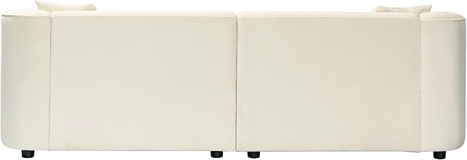 Acanva Luxury Modern Tight Curved Back Velvet Sofa, Minimalist Style Comfy Couch for Living Room Apartment, 4 Seater Modular Sectional, Cream