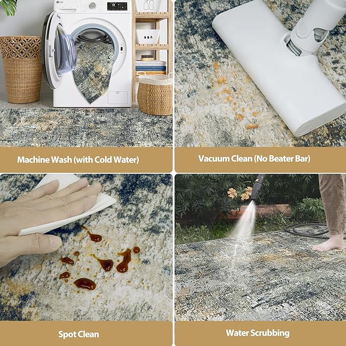 - Easy Maintenance: This 8x10 rug is machine washable (6'x9' and above recommended for commercial laundry). Regular vacuuming and spot cleaning keep it fresh and fade-resistant. Low pile height works with robotic cleaners—avoid bleach for the best care