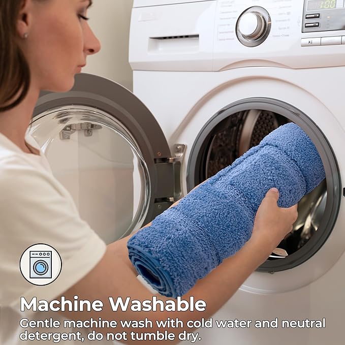 - Machine Washable - Machine wash the bathroom floor mat with cold water and mild detergent. Make sure the dryer is on low heat setting when tumble dry and keep away from chlorine and bleach. After professional testing, the color will remain vibrant after many washes.