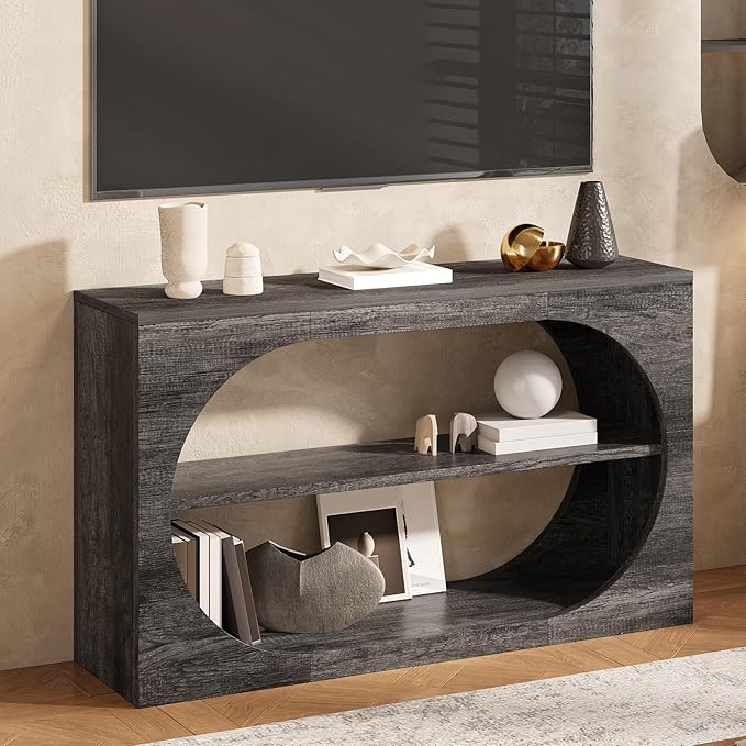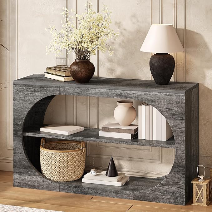 - 【Vintage Rustic Style】Its wood grain finish and elegant curved cutout design evoke a charming vintage appeal that blends seamlessly with any home decor. The open design enhances the console table's aesthetic appeal and allows easy access to the lower shelves.