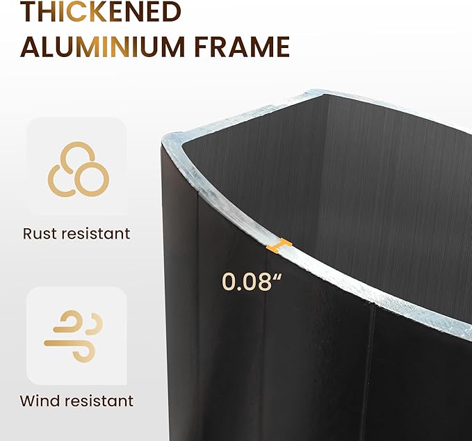- Thickened Aluminum Frame: Aluminum main pole is rust resistant, enhancing the stability of your patio umbrella; 8 thickened ribs make the cantilever umbrella more stable in windy conditions; Powder coated design increases the durability of the umbrella
