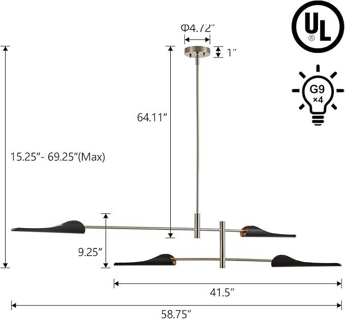 - Bulb Requirements: 4 X G9 light bulbs, 60W Max(not Included).