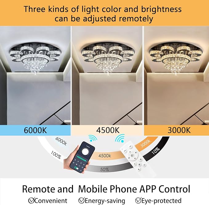 - Remote Control Chandelier - The chandelier can be used with voltages in the range of AC 110V to 240V. Set lighting color from warm light 2700K to day light 6000K, and dimming dark or bright any time (Note: Chandelier itself has a dimmer, Do not use with any dimming system or dimmer switch)