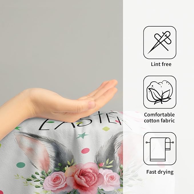 - 【Easy Care】This set of 2 Easter rabbit spring hand towels is machine washable, highly absorbent and dries quickly.Wash with warm water less than 40℃ .No iron and bleach