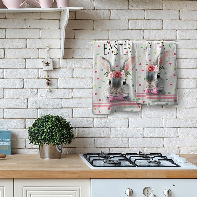- 【Generous Size for Versatility】Each happy Easter Mrs. rabbit pink decorative dish towel measures 14.4''x28.3'', providing ample coverage for various tasks. Whether you're drying dishes, hands, or surfaces, these towels offer versatility in use, making them a practical and stylish addition to your kitchen