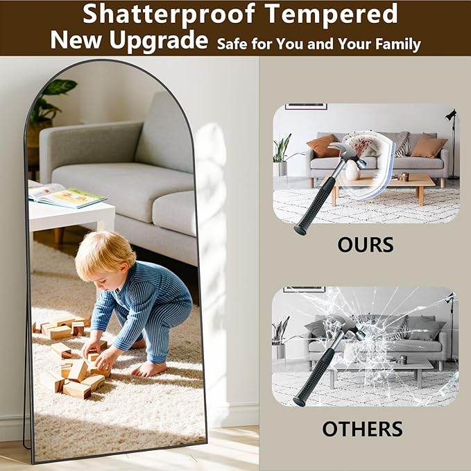 - HD Nano Shatterproof Glass: Our arched full body mirror features shatterproof glass, offering undistorted reflection while also ensuring the safety o fyou and your family. 1:1 shows true reflection, don’t worry it will lengthen or distort images