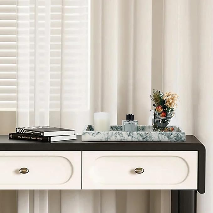 - 【Versatile and Functional】 This marble vanity tray is designed for various applications, making it perfect for organizing your bathroom essentials. It provides a stylish and convenient storage solution for hand soaps, toiletries, towels, perfumes, cosmetics, jewelry, and watches on your bathroom sink or vanity.