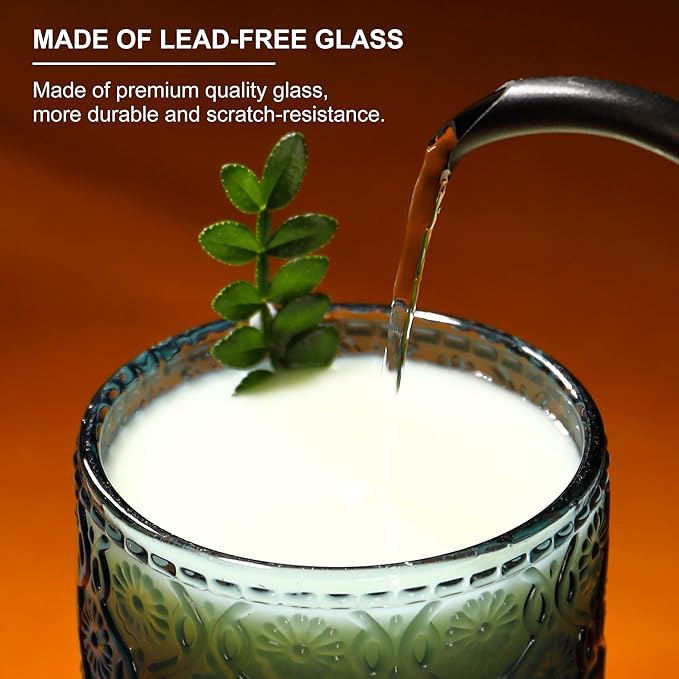 - [Elegant Floral Embossed Design]: A Touch of Vintage Charm. Each vintage drinking glasses features intricately embossed floral patterns, meticulously crafted with a special technique for a luxurious, textured finish. The vintage-inspired design adds sophistication to any table setting, turning ordinary meals into romantic dinners or festive gatherings. These cocktail glasses are perfect for enhancing your home décor, these glasses are not just functional but also aesthetic statement pieces.
