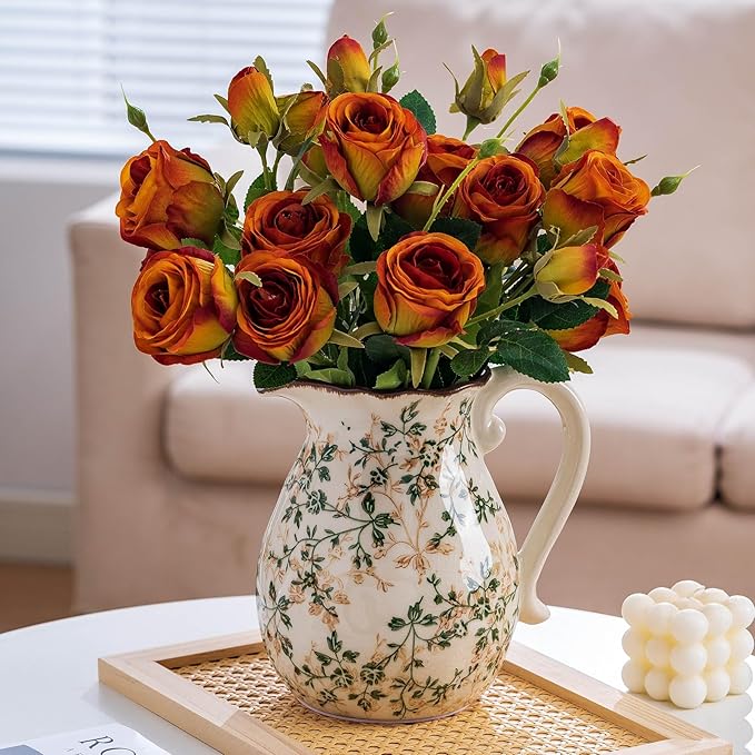 - Elegant Vintage Design: This handmade vintage pitcher vase features a timeless green and white vase design with delicate details, adding a touch of chinoiserie decor and vintage home decor to your living room, dining area, or bedroom.