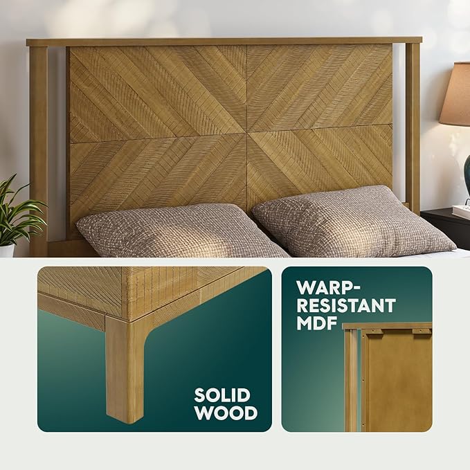 - STURDY AND BEAUTIFUL: A durable, king bed frame and headboard with design lends optimal mattress support while a unique wood grain finish makes our foundation an impressive centerpiece for your main suite