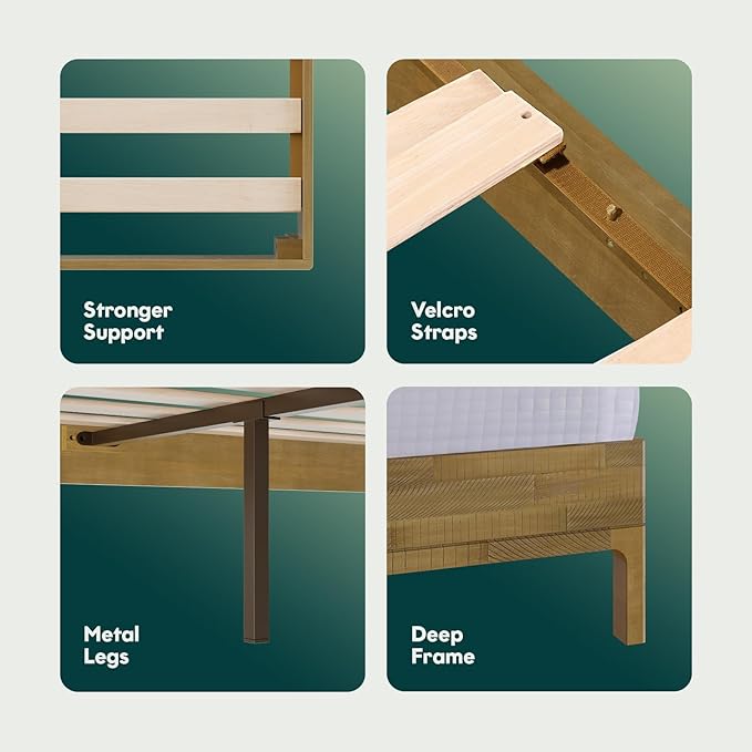 - SOLID SUPPORT: The wood slat support system provides complete mattress support; our solution eliminates the need for a box spring; The capacity of bed frame king size up to 800 pounds