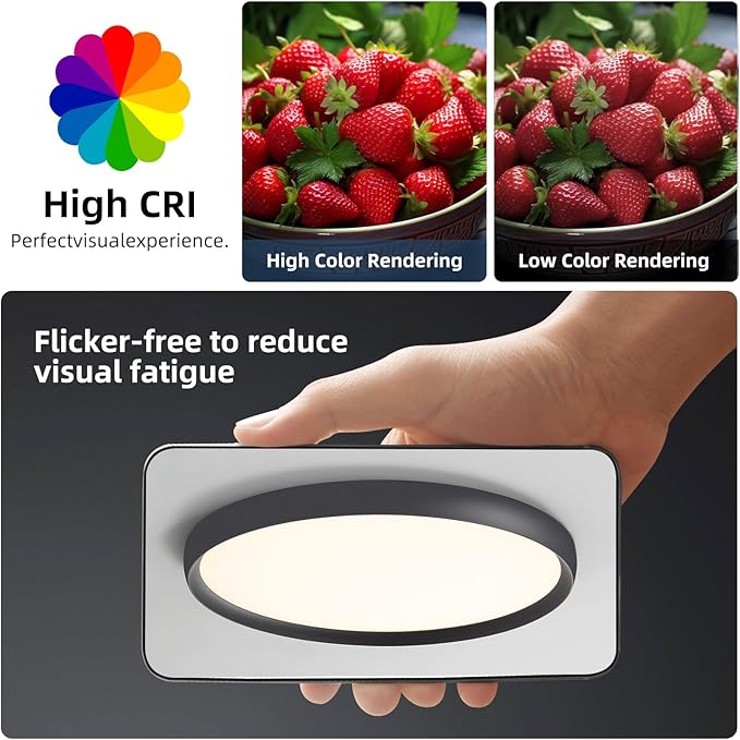 - True-to-Life, Flicker-Free Lighting: Enjoy vibrant, flicker-free lighting with CRI 90+, mimicking natural sunlight for accurate color rendering. Perfect for kitchen ceiling light fixtures, office ceiling lights, and dining room lighting, its uniform light distribution and glare-free design reduce eye strain, making it ideal for long hours in offices, hallways, or bedrooms, offering a comfortable and efficient lighting experience.