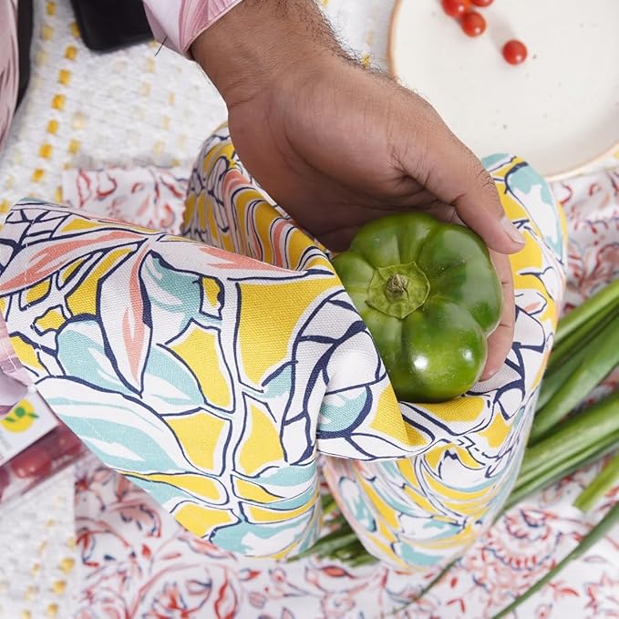 - EASY CARE TEA TOWELS: We recommend to machine wash separately in cold water before the first use to remove any excess lint leftover. Tumble dry on low. These elegant print patterns go with any aesthetic from modern to nostalgic - these go with everything! Great alternative to paper towels.