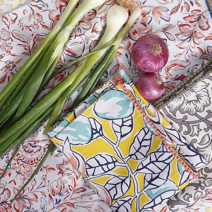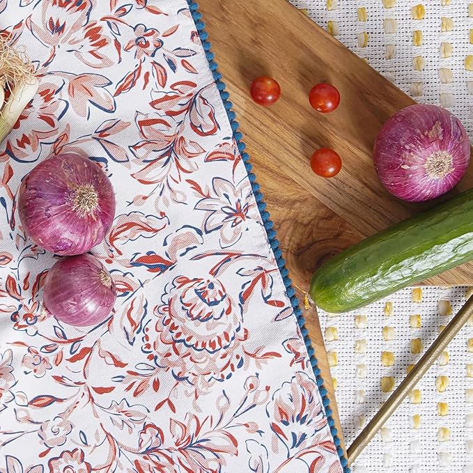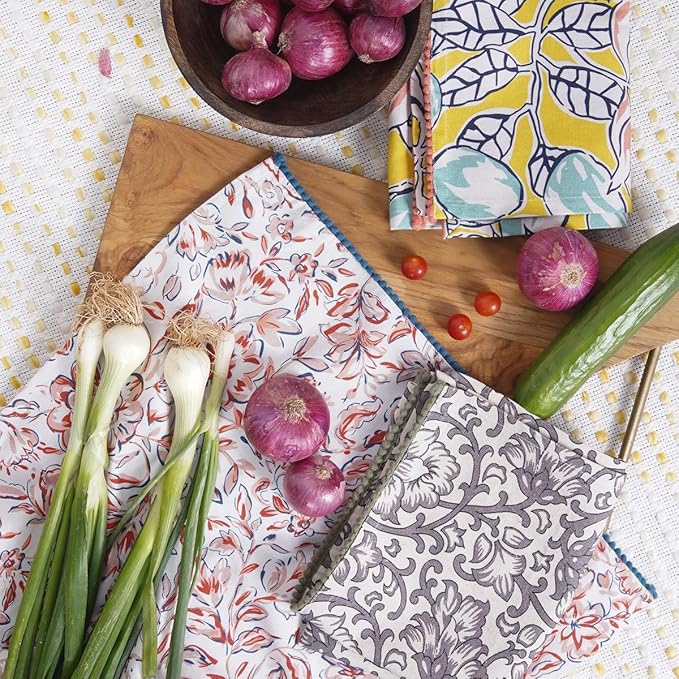 TARAN LIVING Printed Kitchen Dish Bar and Tea Towels Cotton, 18x28 inch with Trims, Cotton Dish Towel Sets (Multicolor, Set of 3)