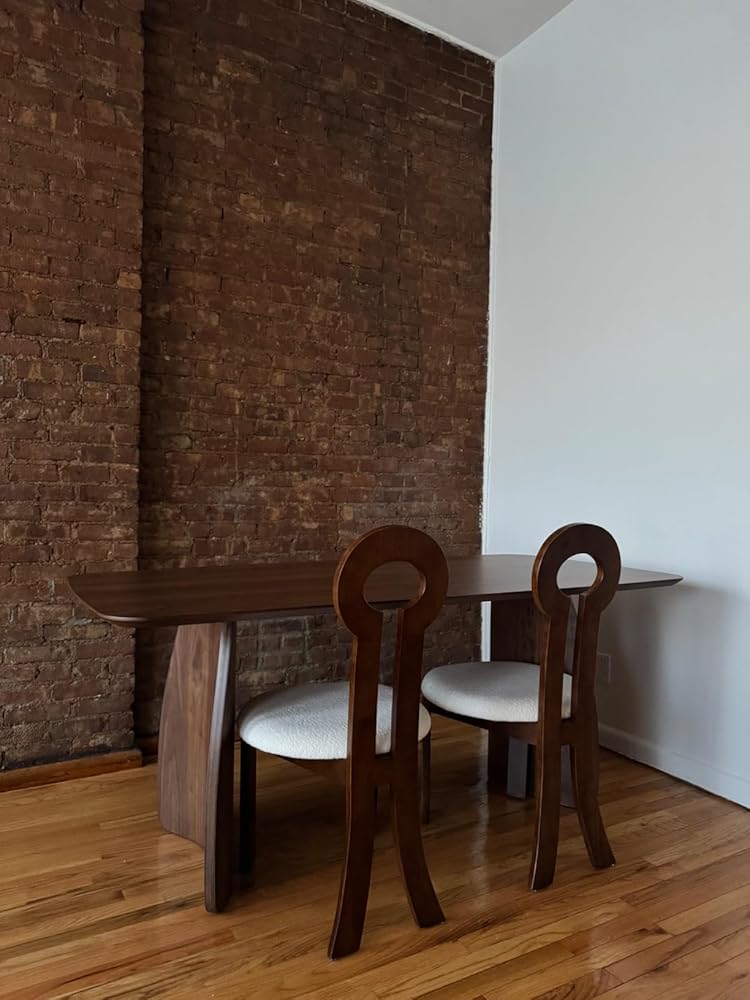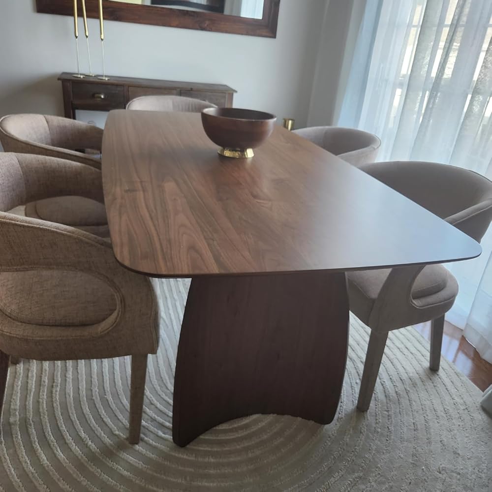 - Artistic Design: With its sleek tabletop, artsy curved legs and warm walnut brown finish, this large dinner table eexudes a retro modern vibe. It's the perfect centerpiece for any dining area, providing a place where friends and family can gather and talk or share a good meal