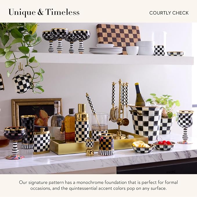 - SERVING ESSENTIAL: Our Courtly Check Gold ice-bucket cooler features a gold-toned stainless-steel bucket with a clear enamel coating. It is decorated with our classic black-and-white color-dragged checks.