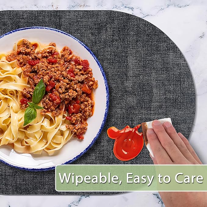 Placemats for Dining Table Set of 4 Non-Slip, Heat Resistant Oval Leather Placemat Double Layer, Waterproof Table Mats Easy to Clean for Kitchen Dining Room Coffee Office Table, Charcoal