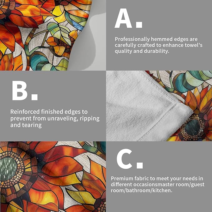 - 【Premium Microfiber Material】Crafted from super-soft and highly absorbent microfiber material, the stained glass floral towels are not only a delight to touch but also efficiently soak up spills and dry quickly