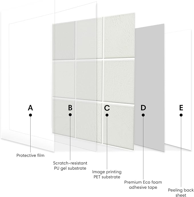 - Built to Last – Crafted from premium 2.5mm thick material, these tiles resist cracking, peeling, yellowing, and fading. Designed to withstand humidity, heat, and daily wear in high-use areas.