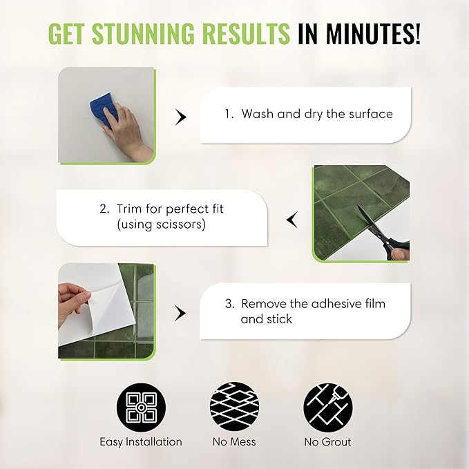 - Heat & Water Resistant – Safe to install near stoves, sinks, and fireplaces. The durable surface maintains its beauty and shines in tough conditions while staying easy to clean.