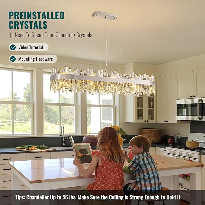 - ✨【Chandelier Size】: L52"(131cm) x W15.7"(40cm) x H9.8"(25cm). Adjustable hanging height: Max 59’’(150cm). Convenient cable lockers for easy height adjustment. Suitable for high and low ceilings. Can be installed on flat and sloped ceilings. Space room fit: 215-430 square feet (20m²-40m²).