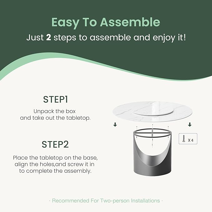 - Easy to Assemble: POVISON round dining table is easy to assemble, please put the sintered stone tabletop on the base and tighten it with screws to complete the installation. It is recommended that two people work together to complete the installation. The round dining table for 6 will be sent in two packages, and the time you receive each package may be different. (Product Weight: 300 LBS, Product Size: 59.06"W x 59.06"D x 29.53"H)