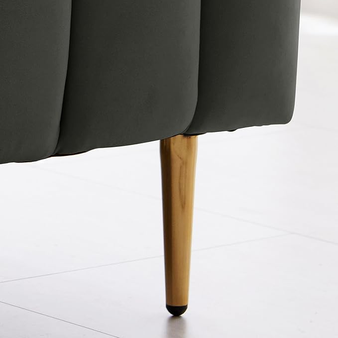 Livinia Twin Size Elton Velvet Platform Bed, Upholstered Bed Frame with Vertical Channel Tufted Headboard Footboard, Strong Wood Slats, No Box Spring Needed, Gray (Twin)