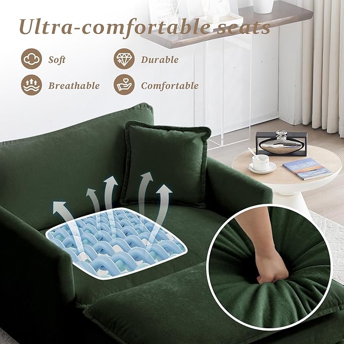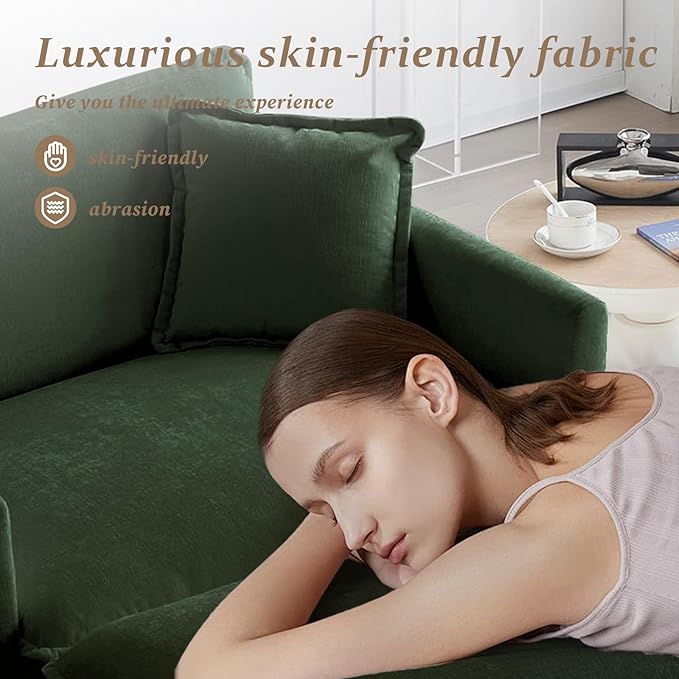 - Soft Chenille Upholstery: The luxurious chenille fabric provides a soft, smooth touch and keeps you comfortable for hours. Its breathable and durable nature ensures long-lasting use without compromising comfort. This sofa's elegant fabric adds a cozy feel, perfect for relaxing, lounging, or enhancing any room’s decoration.