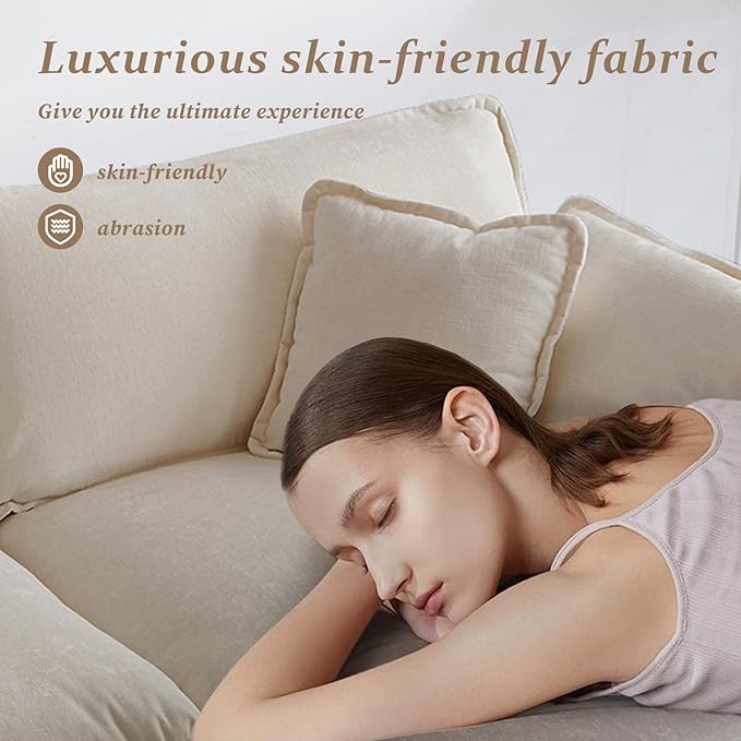 - Soft Chenille Upholstery: The luxurious chenille fabric provides a soft, smooth touch and keeps you comfortable for hours. Its breathable and durable nature ensures long-lasting use without compromising comfort. This sofa's elegant fabric adds a cozy feel, perfect for relaxing, lounging, or enhancing any room’s decoration.