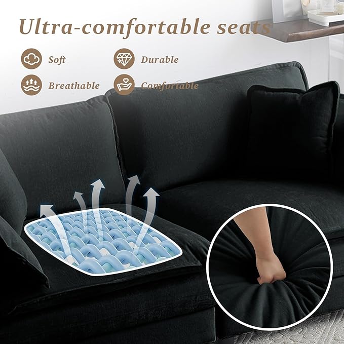 - Soft Chenille Upholstery: The luxurious chenille fabric provides a soft, smooth touch and keeps you comfortable for hours. Its breathable and durable nature ensures long-lasting use without compromising comfort. This sofa's elegant fabric adds a cozy feel, perfect for relaxing, lounging, or enhancing any room’s decoration.