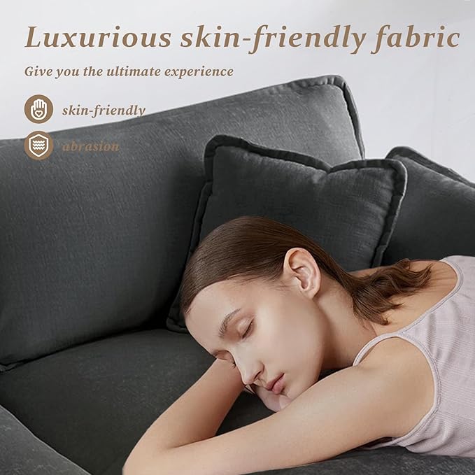 - Soft Chenille Upholstery: The luxurious chenille fabric provides a soft, smooth touch and keeps you comfortable for hours. Its breathable and durable nature ensures long-lasting use without compromising comfort. This sofa's elegant fabric adds a cozy feel, perfect for relaxing, lounging, or enhancing any room’s decoration.