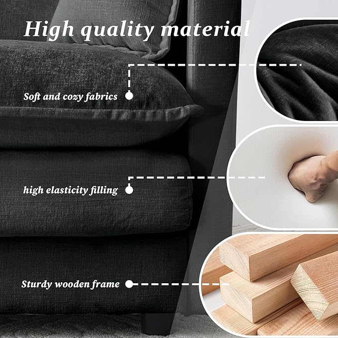 - Ultimate Comfort Experience: Crafted with high-density foam and a 25-inch deep seat, this sofa offers unmatched comfort. The dual-layer cushions relieve pressure, while the thick, removable armrests enhance flexibility. Ideal for long sitting sessions, relaxation, or entertaining, it provides lasting comfort and support.